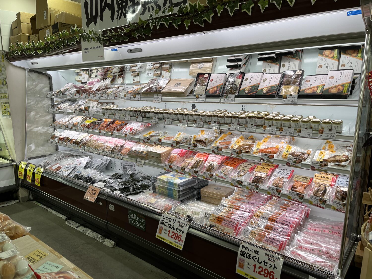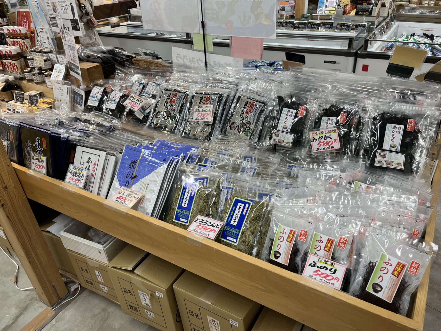 新鮮な野菜やお菓子、海鮮加工品などが並んでいる店内。