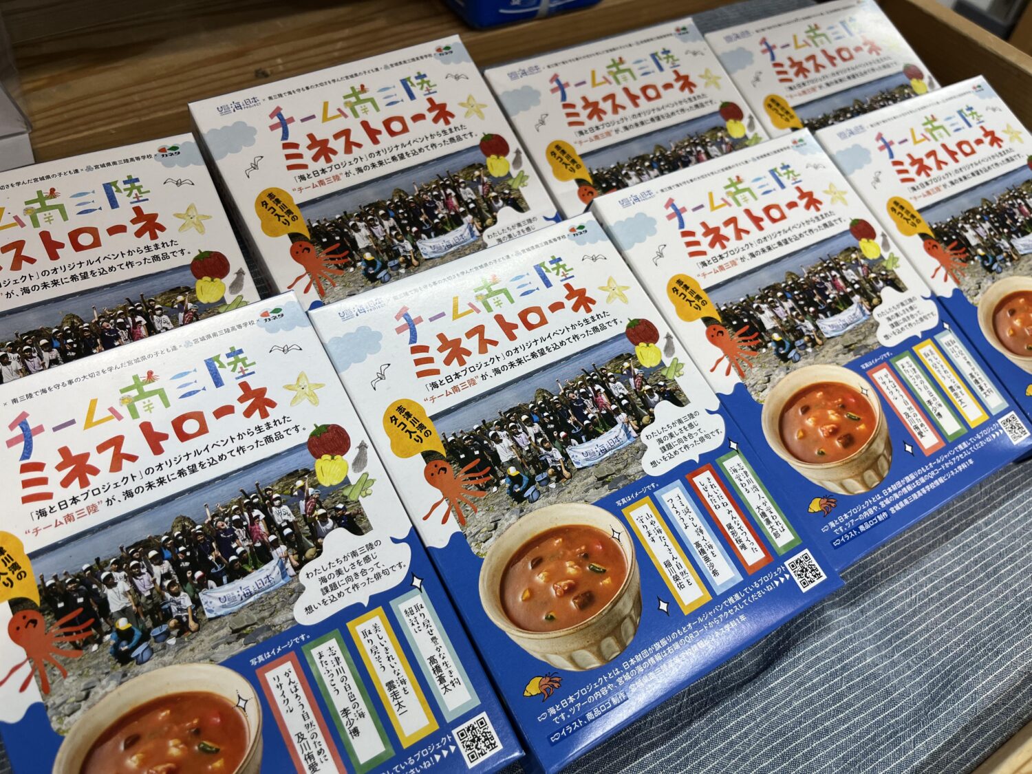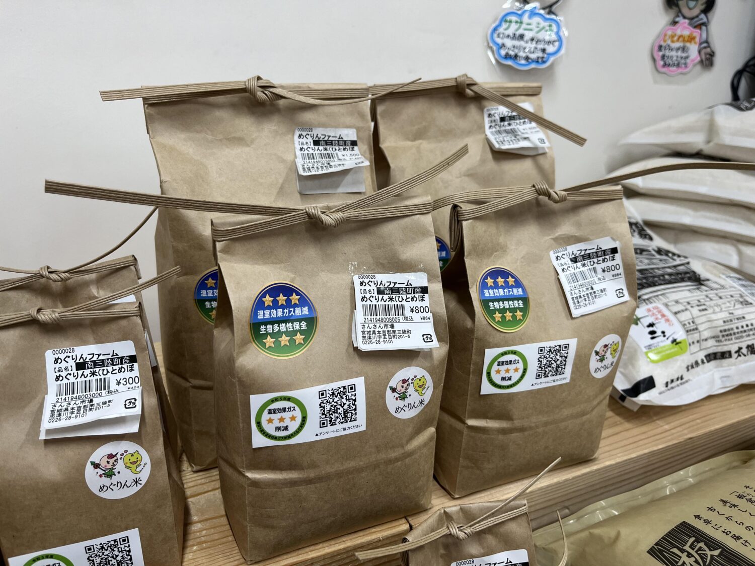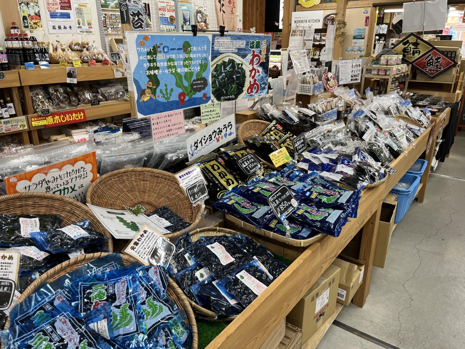 南三陸町の液肥で育てられた「めぐりん米」、椎茸を町内で栽培している椎彩杜の「椎茸かりんとう」、南三陸のマスコットキャラクターである「オクトパス君がプリントされたサイダー」など、他ではあまり売っていない町内の商品を購入することもできる点がさんさん市場の魅力!