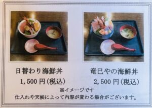 お得なラーメン寿司セットや、うどん、蕎麦、丼ものと種類豊富に選べるのが、「竜巳や」の魅力のひとつ。どんな気分の時でも、お店に行ってから気軽にメニューを選ぶことができます。歌津地区で幅広くご飯をゆっくり食べたい時にいかがですか?