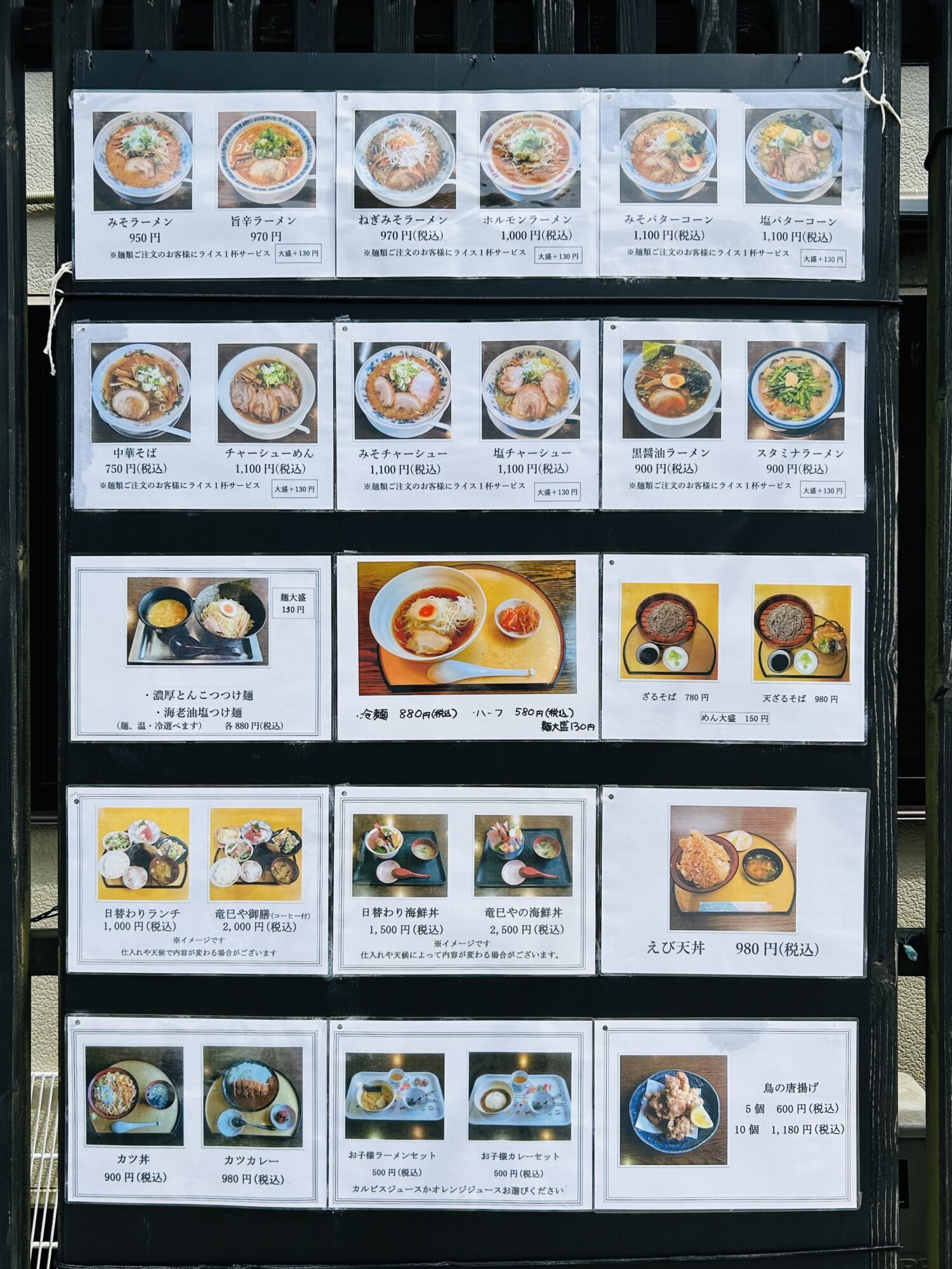 うどん、そば、ラーメン、つけ麺などの麺類をはじめ、カツ丼、えび天丼、豚丼など丼もの、お子様セットなど、種類豊富にご用意しております。
