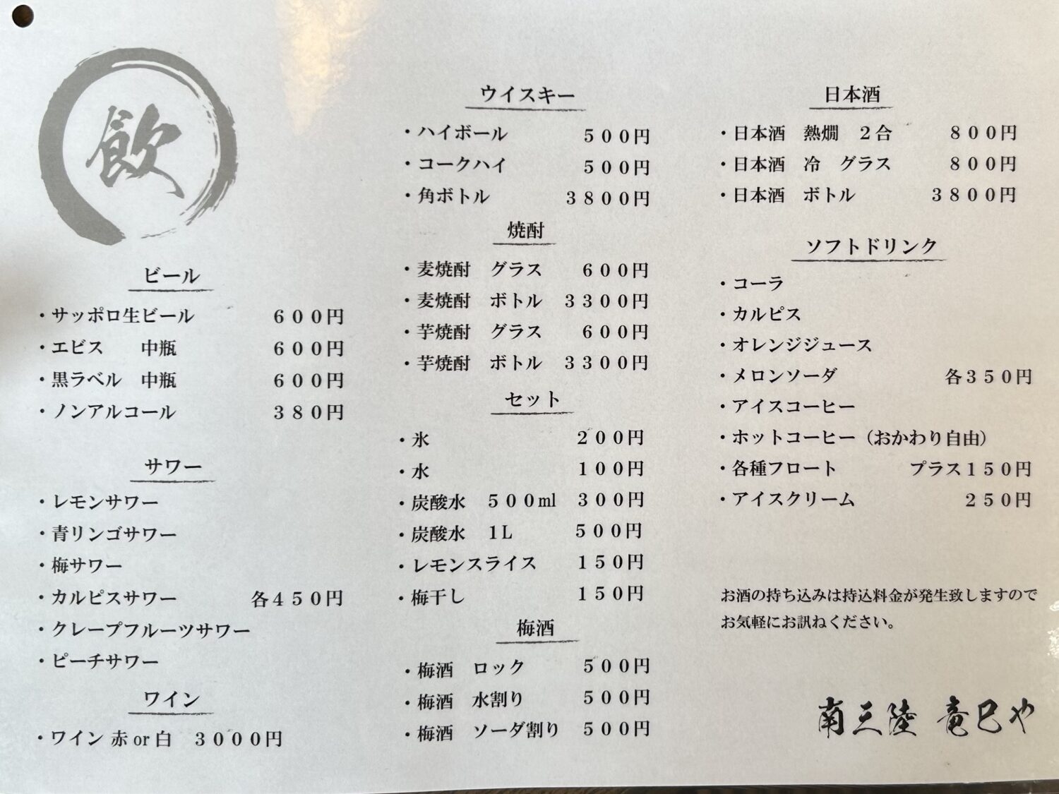 日替わりランチメニューや、竜巳や御膳(コーヒー付)など、定食メニューもあります。