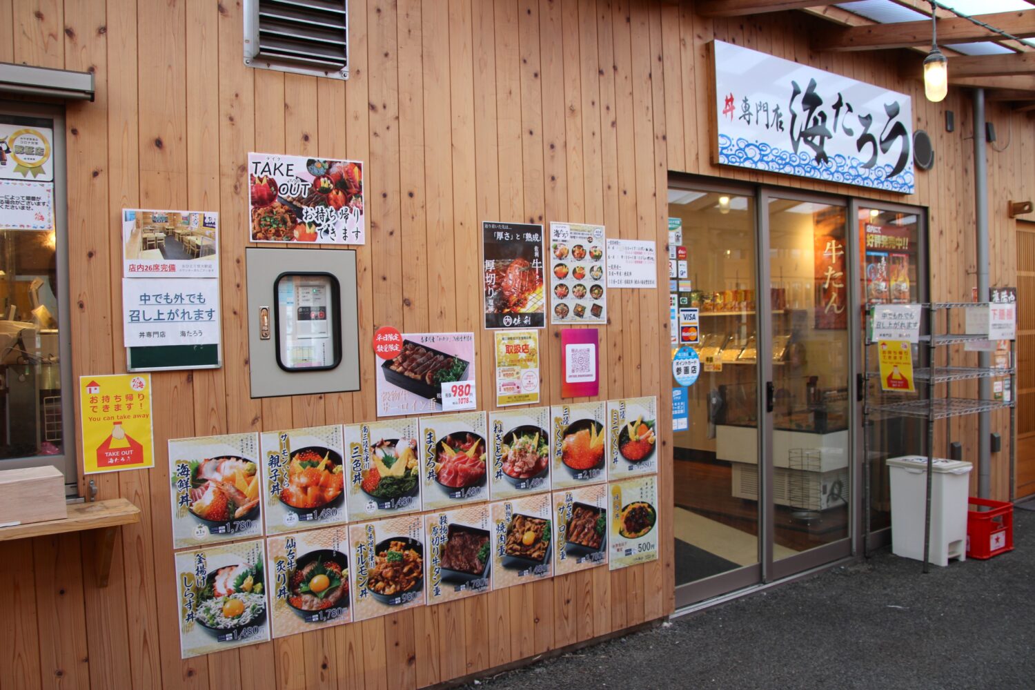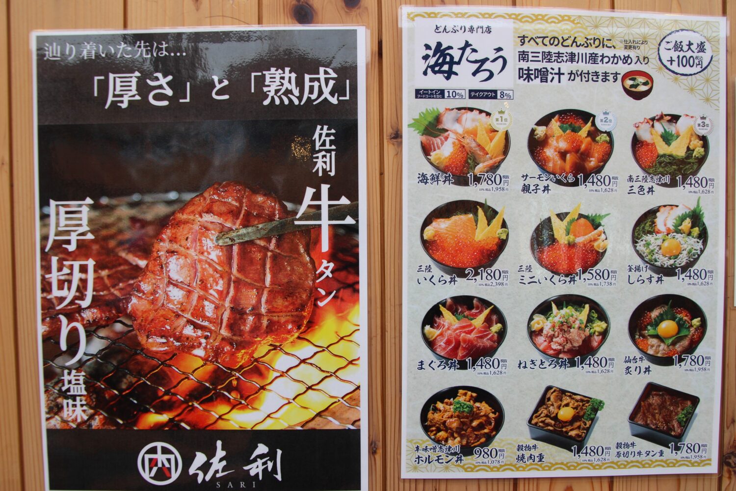 海たろうは、肉屋(フレッシュミート佐利)が経営する異色な丼専門店です。海鮮丼から仙台牛まで幅広いメニューが充実しています。昼食でのご利用はもちろんのこと、お土産名物の志津川ホルモン、持ち帰りのお肉、手作りお総菜も人気です。