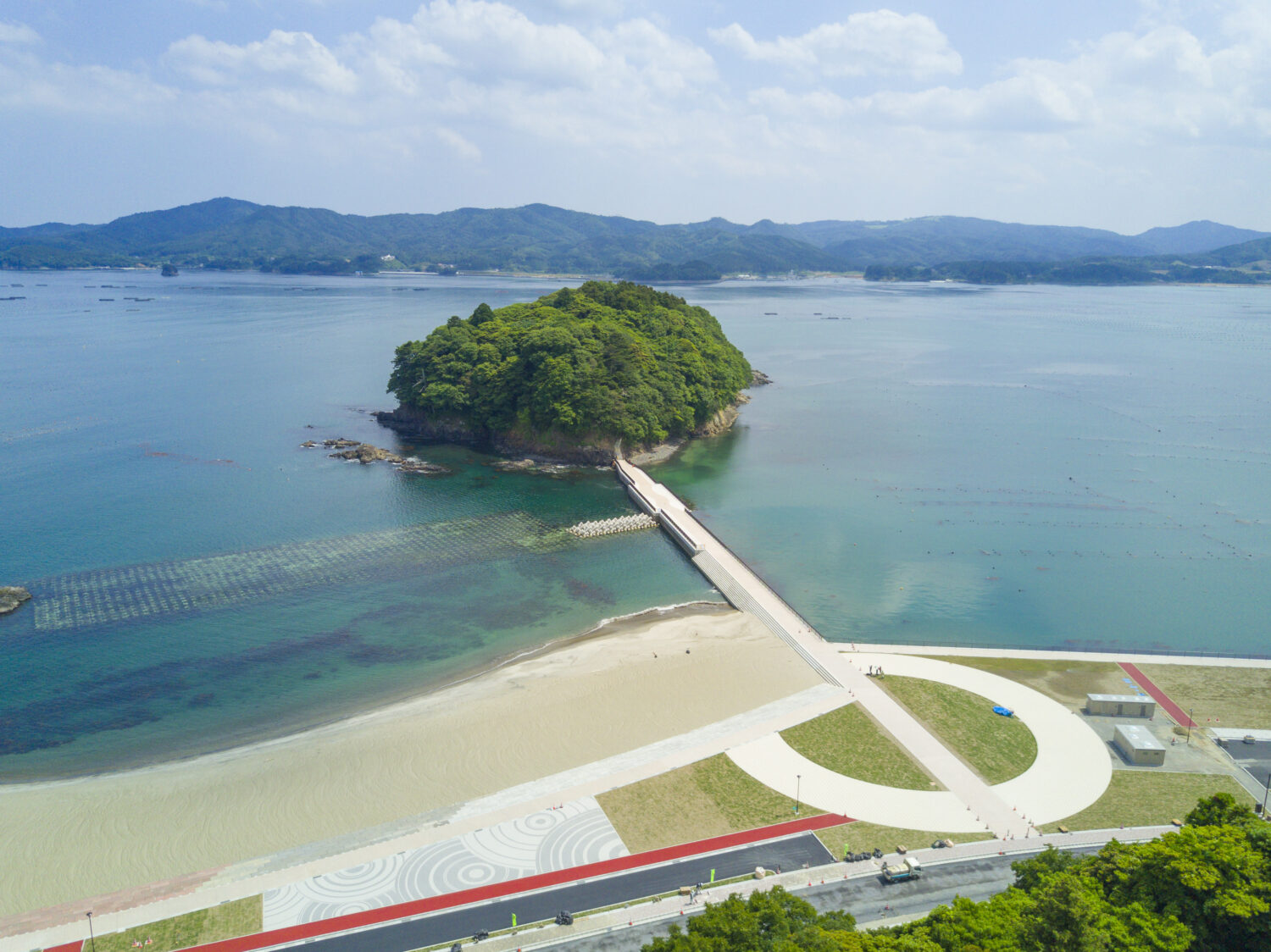 南三陸町で唯一歩いて行ける荒島。この島には、地元の信仰を集める荒嶋神社が祀られており、自然豊かな島の中に赤い鳥居とお社が佇んでいる。また荒島は、小さい島ながら3つの植生の森が共存する珍しい環境。島に入ると様々な木々と木漏れ日から神秘さを感じることでしょう。