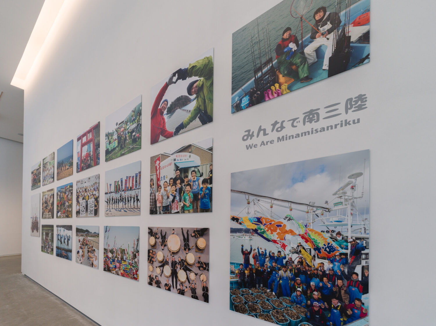 オープンしてすぐの展示は、今までの南三陸を支えてもらった人々への感謝の気持ちを伝えるバナー展示。時期によって展示の内容は変わっていきます。