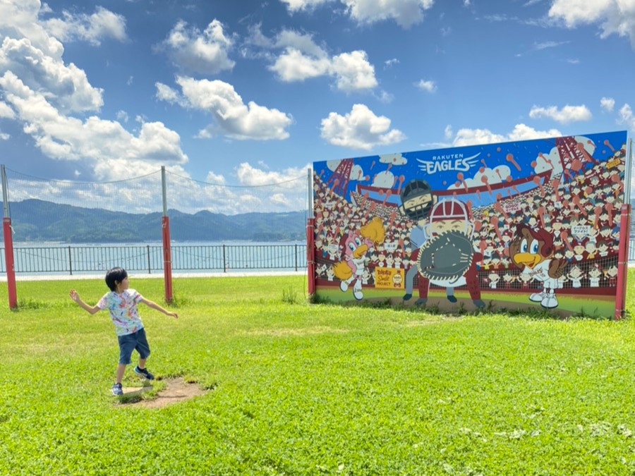 楽天野球団より「思い切り野球ができるように」と、芝生の公園内に設けられました!
