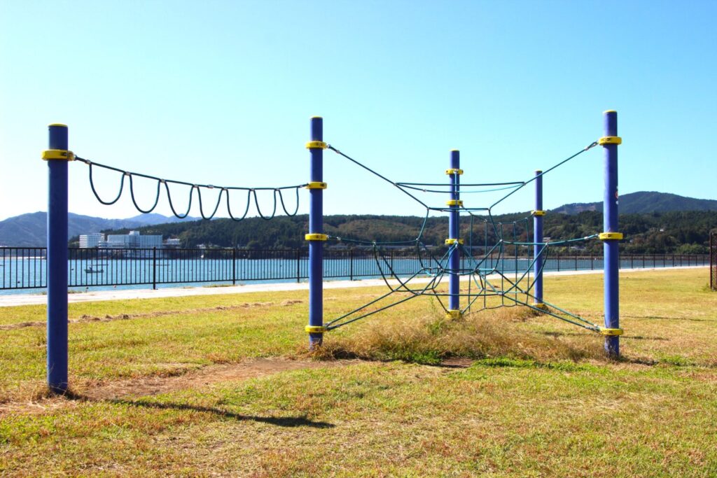 公園内の大部分が芝生で覆われており、志津川湾や荒島を見ながら体を動かすことができる場所となっています。