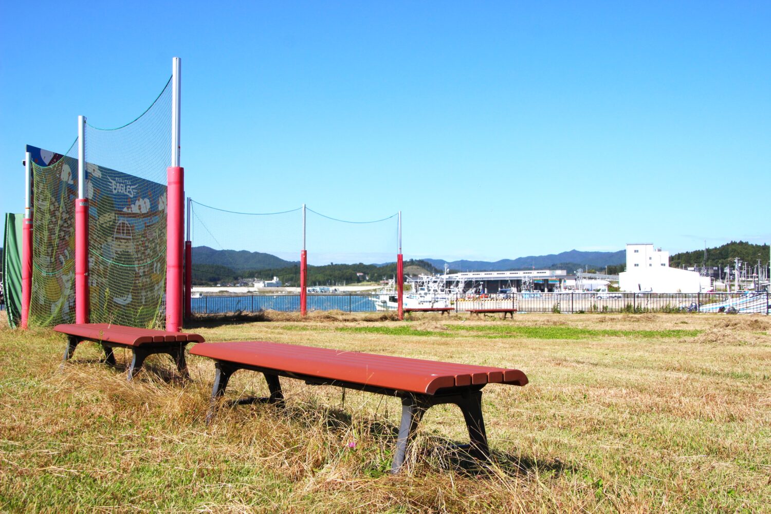 南三陸こどもスタジアムには、一塁側と三塁側にそれぞれ2脚ずつベンチが用意されています。