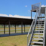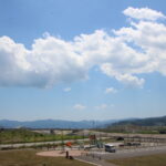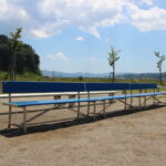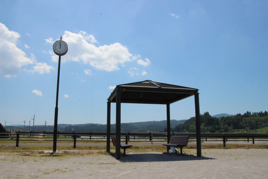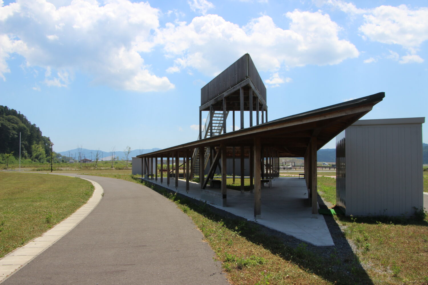 その後、以前の海から近い場所(志津川地区汐見)から離れた内陸部(志津川地区助作)へと場所を移し、再建されました。震災から10年が経過した2021年には、グラウンド中央に展望デッキ付きの「あずまや(東屋)」がオープンしました。