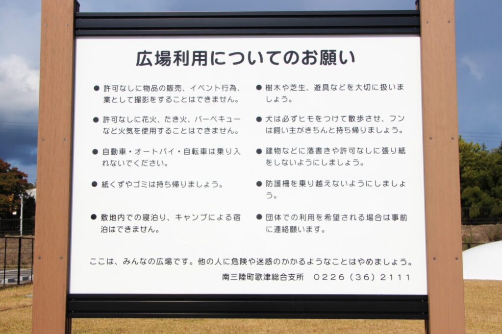 「南三陸ハマーレ広場」は、南三陸ハマーレ歌津の道路向かいに建設された公園であり、海沿いの約1・2ヘクタールを4~5メートルかさ上げした場所に造られました。