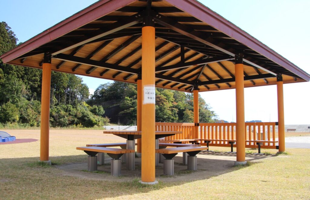 ふわふわドームと複合遊具の間に東屋が設置されています。