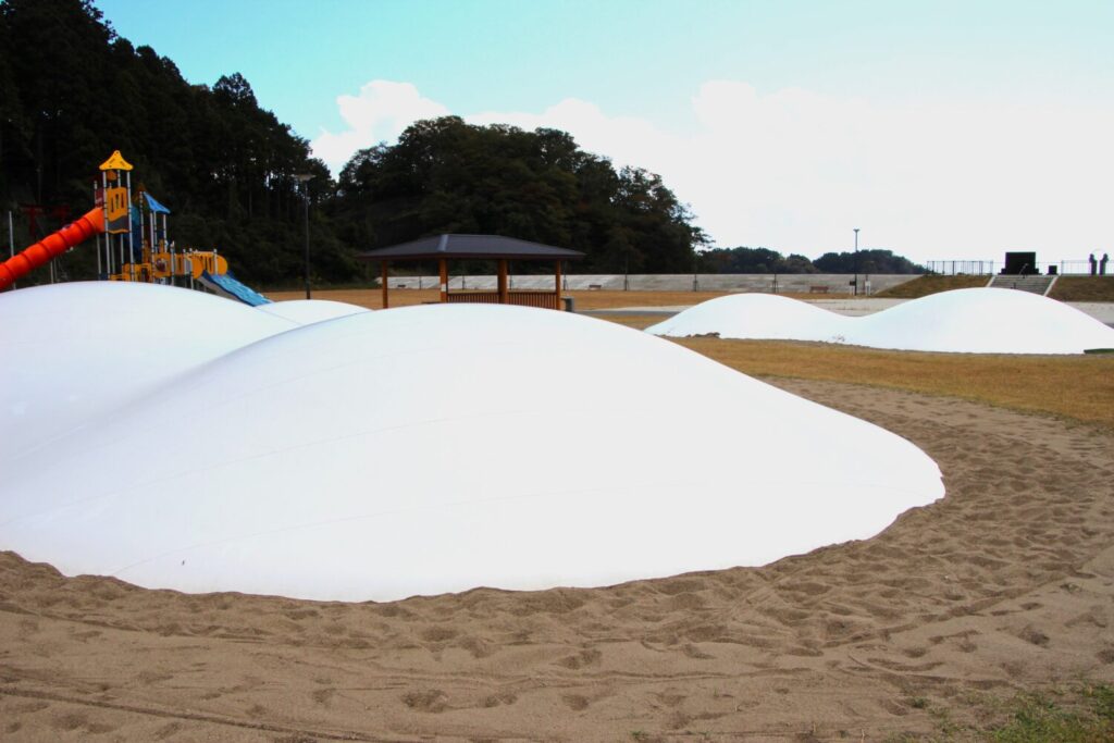 公園内には複合遊具のほか、町内唯一の遊具「ふわふわドーム」も設置されています!