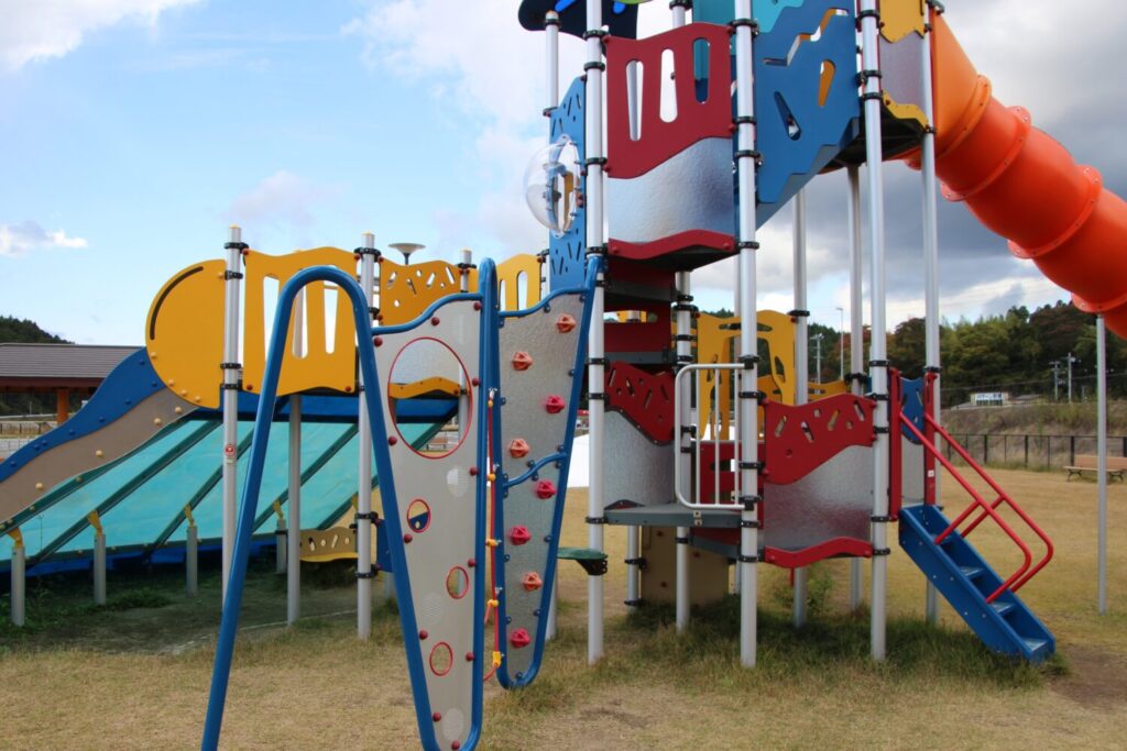 インパクトのあるすべり台のほかにも、ボルダリングウォールなども設置されています!大きな遊具をすべったり登ったりして安全に楽みましょう!