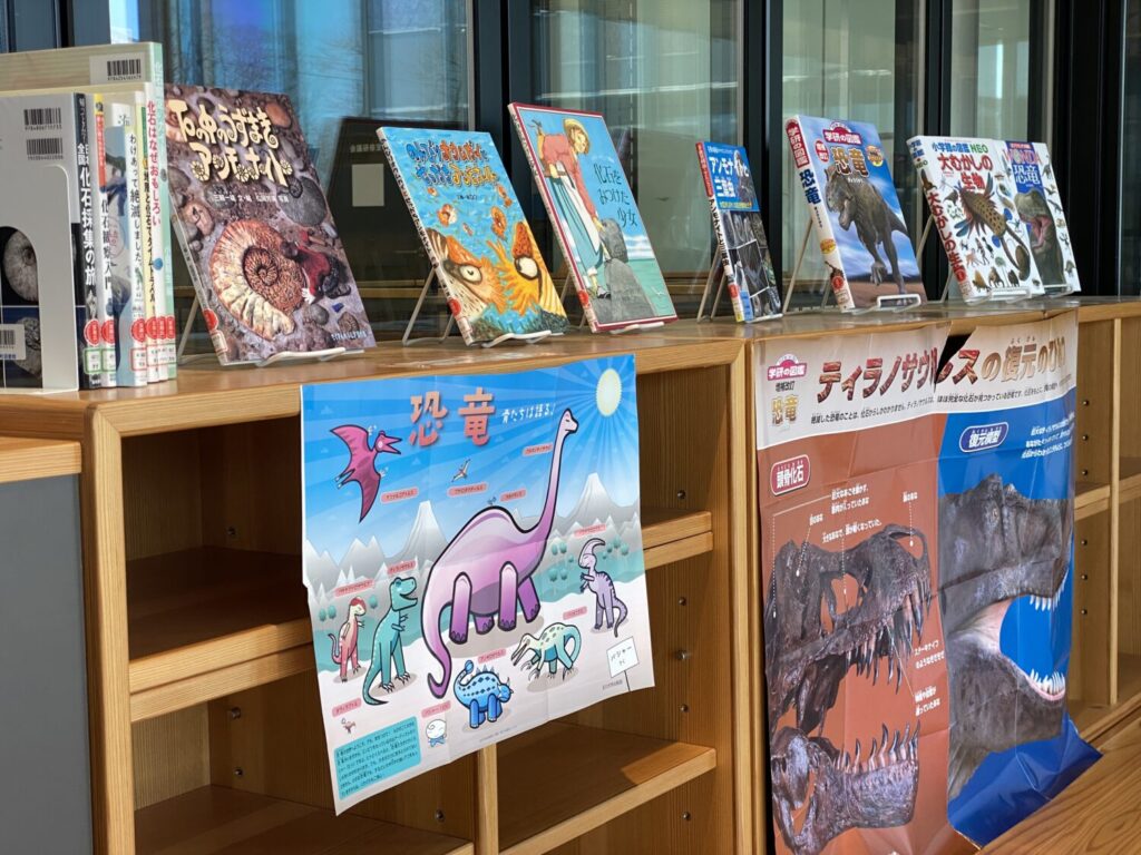 展示室では図書コーナーがあり、気になる化石の本は自由に読むことも。