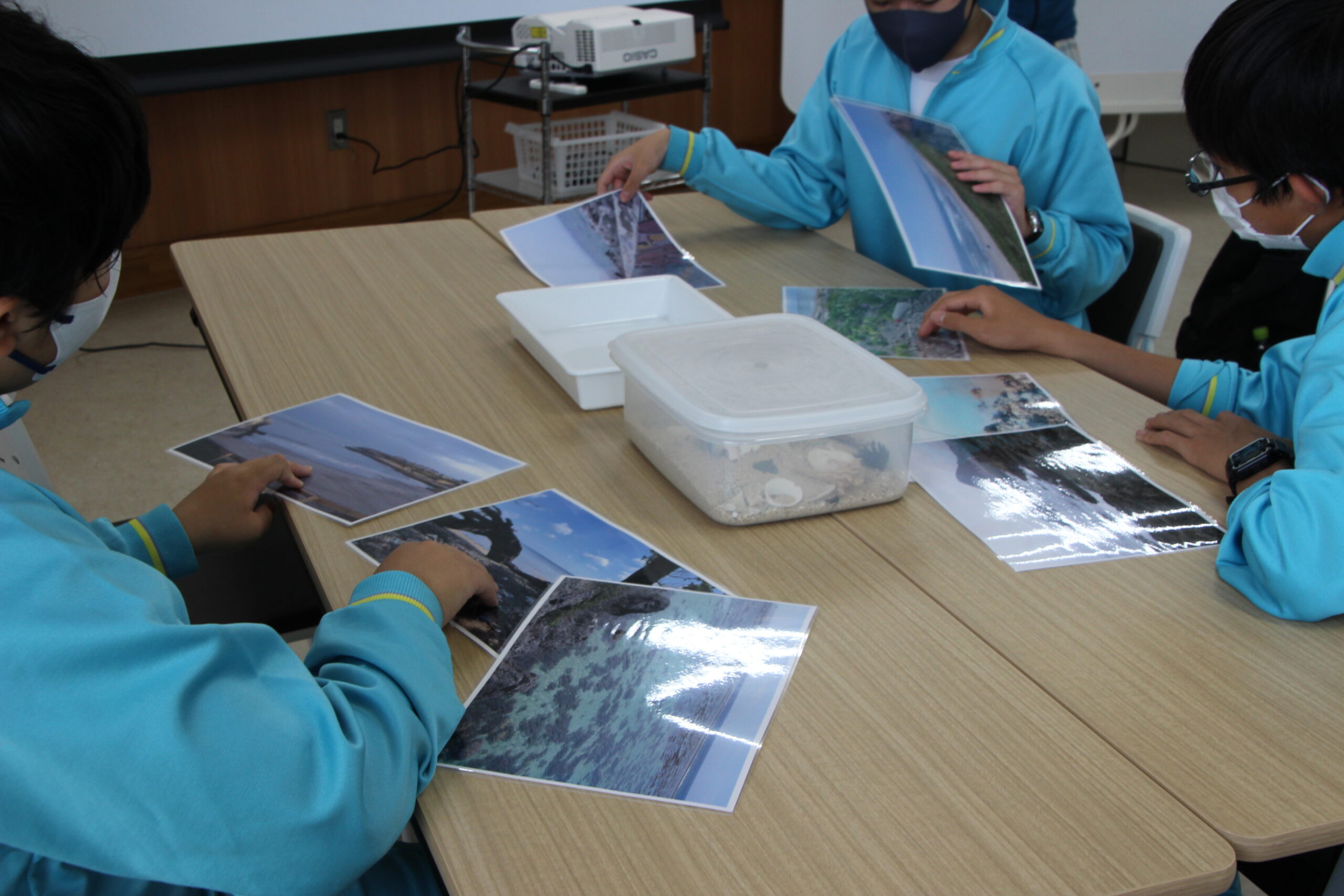 まず、生徒に見せたのは、何枚かの海の写真。その中から、お気に入りを見つけてもらう事からプログラム開始。