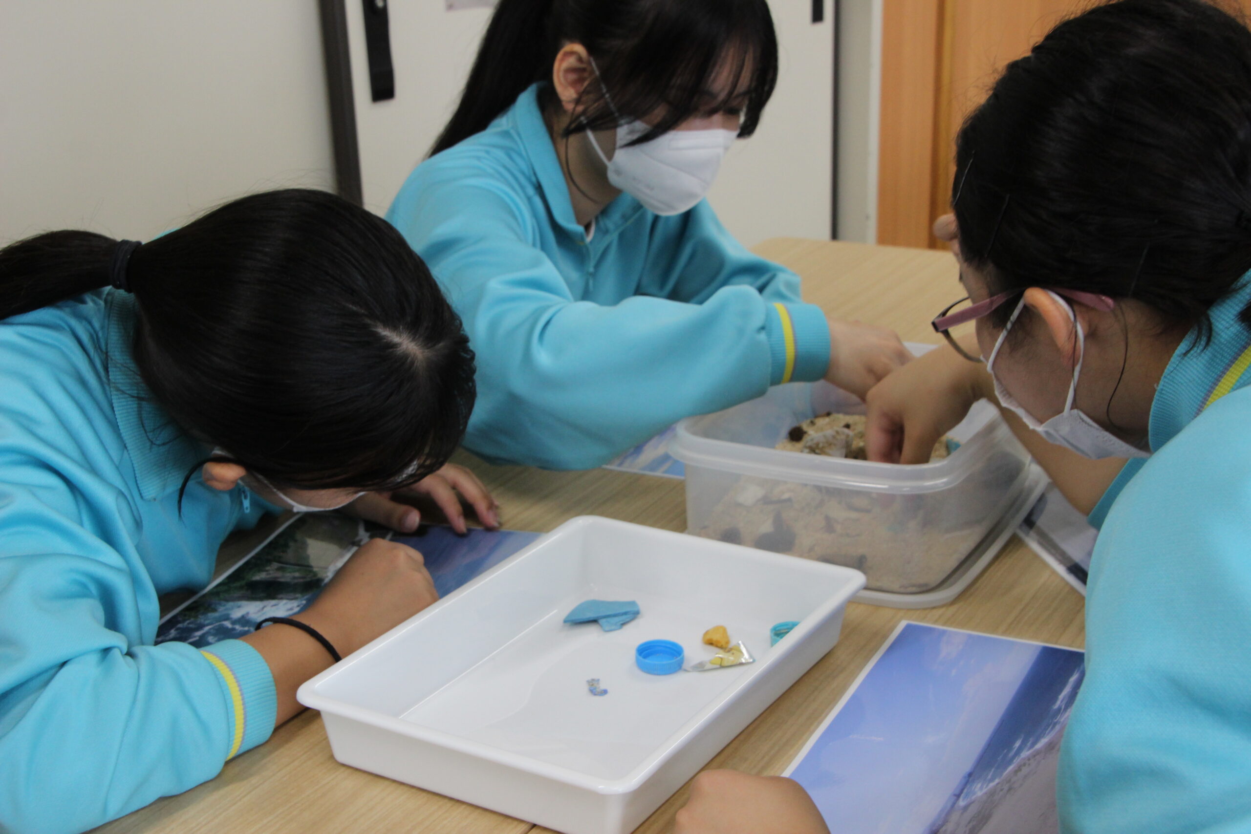 ゴミと自然のものの区別も始めは難しそうでしたが、講師の方々に質問しながら集中して作業をしていきます。