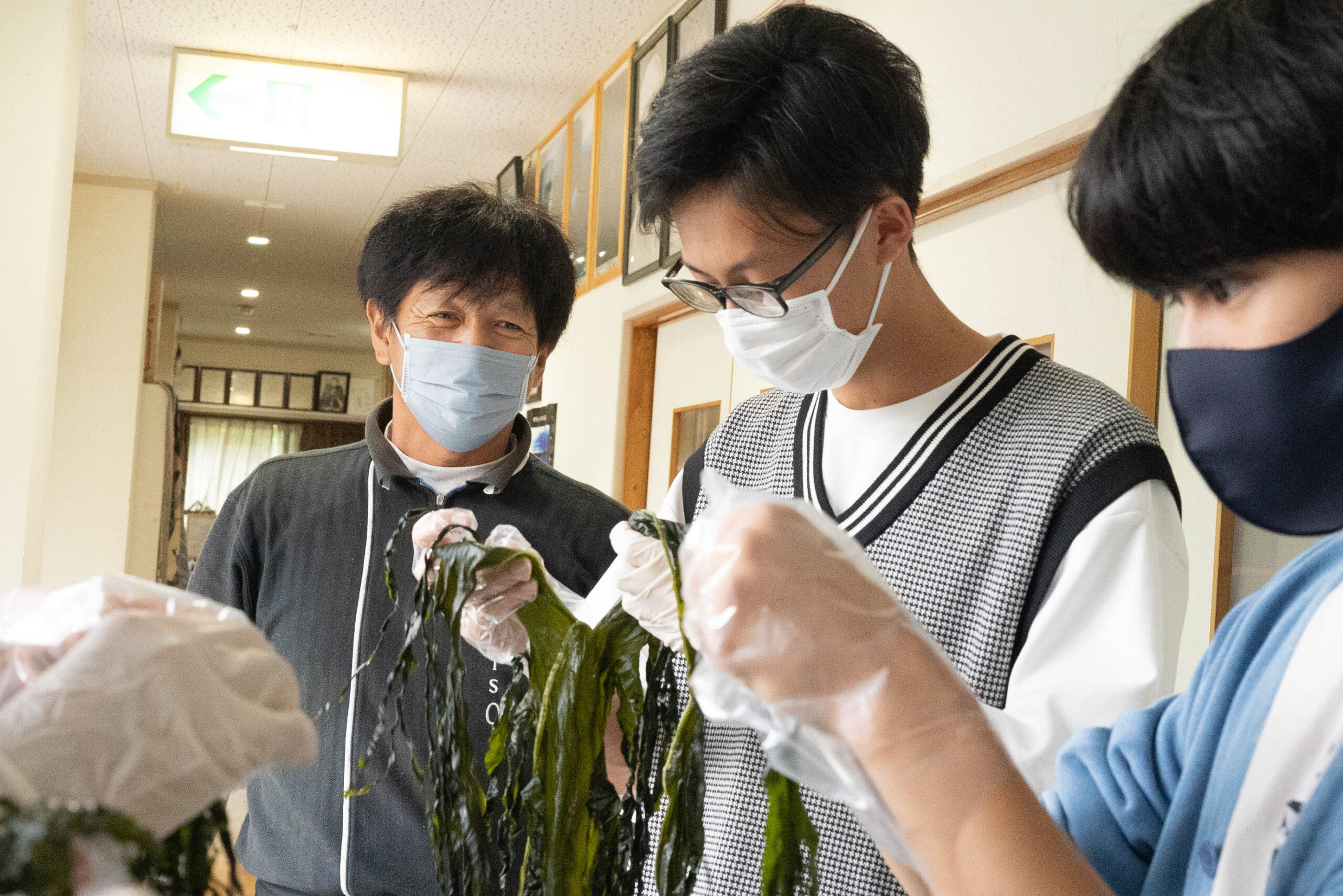 須藤さんの説明を聞いた後、1人ずつわかめを手に取ります。