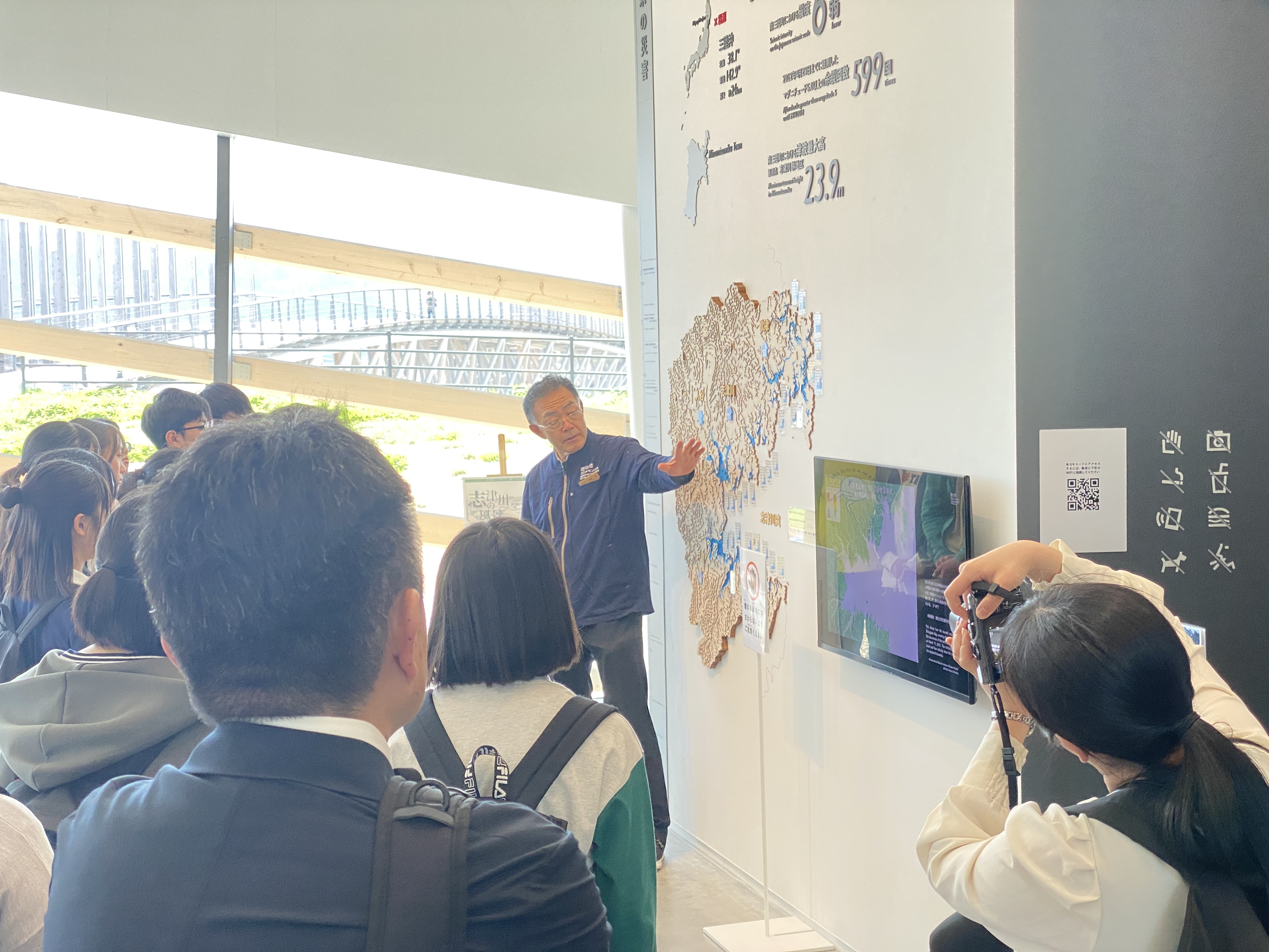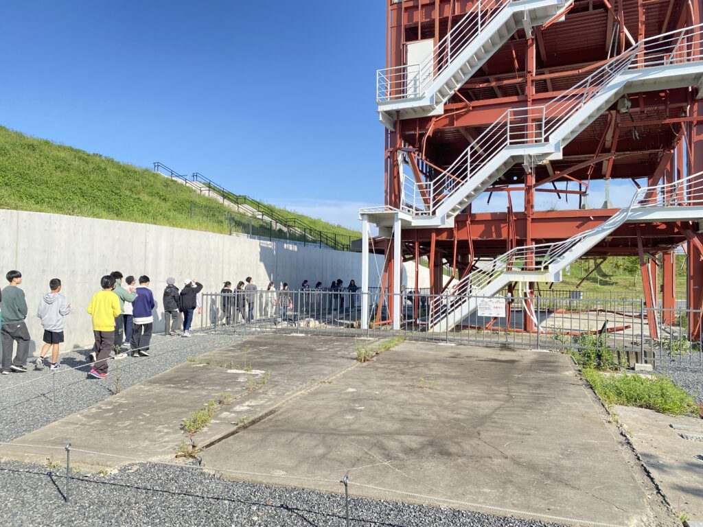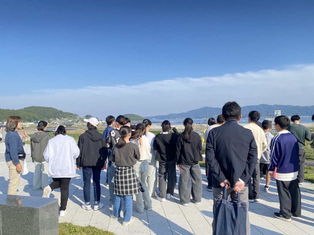 目的地ではバスを降りて、被災した建物や津波の痕跡が残る場所を実際に確認します。津波が到達した高さ、倒壊した建造物を自分の目で確かめ、伝聞だけでなく、その当時を肌で感じ取る場面もありました。知識として学ぶだけでなく、現地に立って初めて得られる感覚に、生徒たちは静かに向き合っている様子でした。
