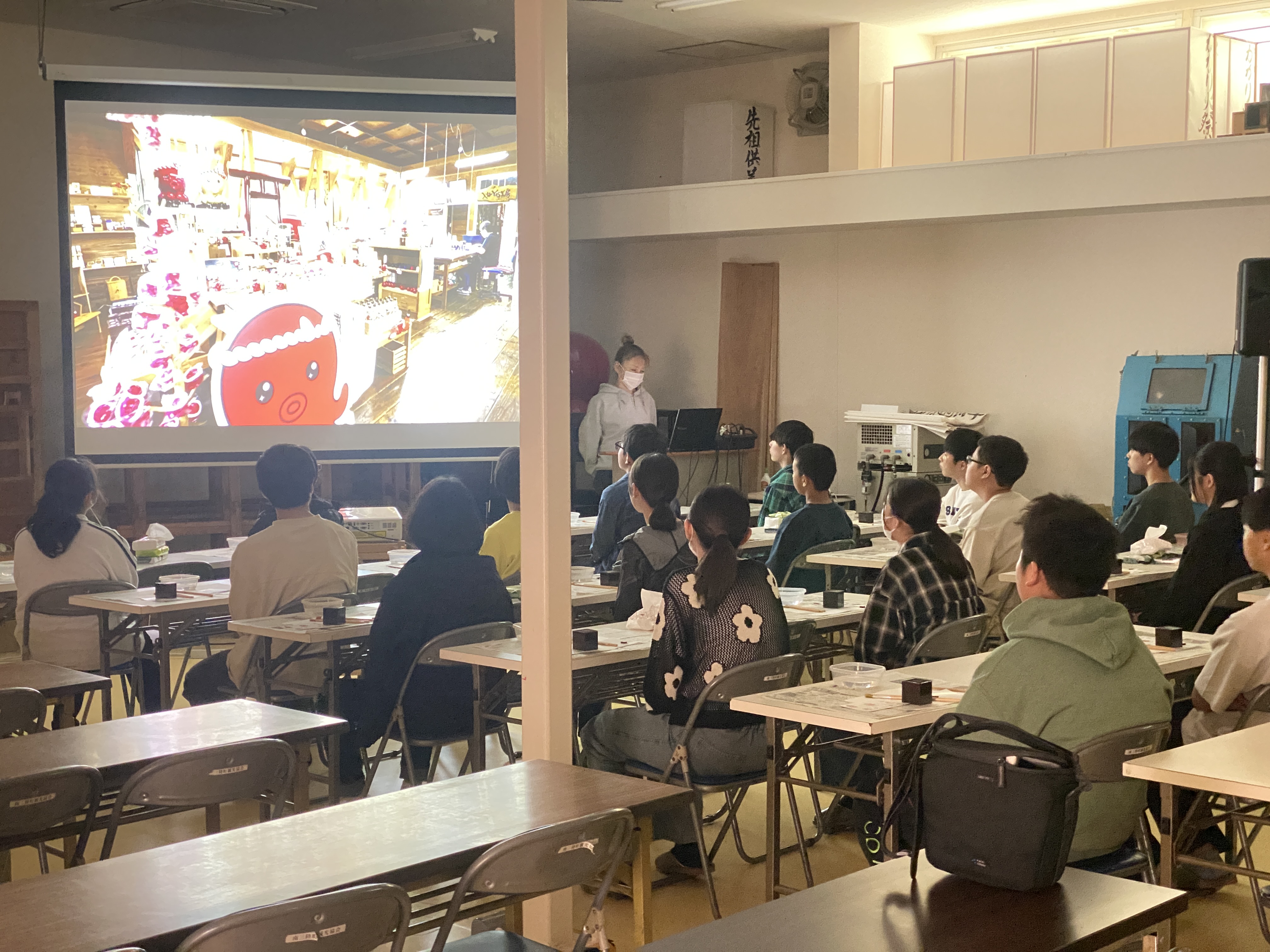 体験の初めには「南三陸町とタコのつながり」について、動画上映と解説があり、生徒の皆さんからは『タコがこの町で有名だとは知らなかった』といった驚きの声も聞こえ、町の特産や文化への理解が深まるきっかけとなったようです。