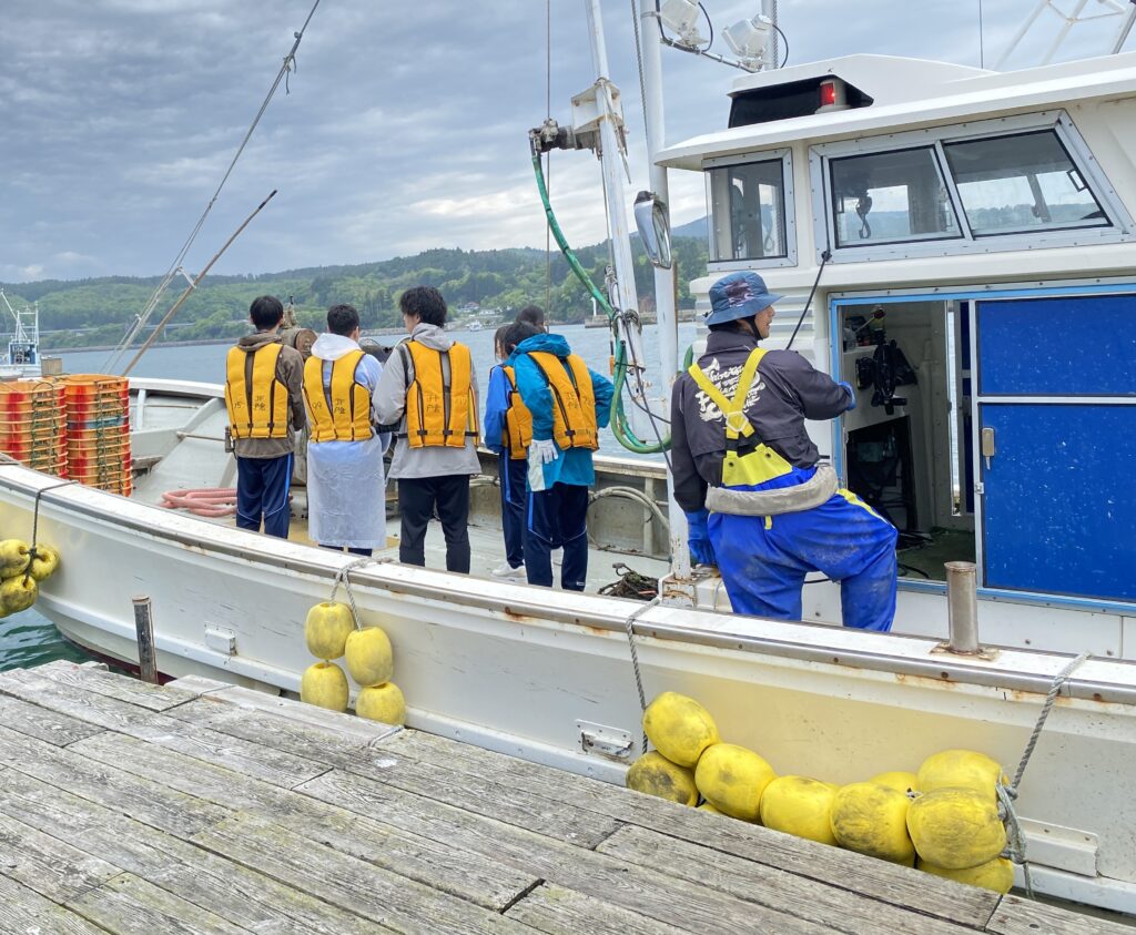 今回の最後を締めくくったのは、南三陸町の基幹産業である「漁業」を学ぶ体験プログラムです。生徒たちはグループに分かれ、町の漁業従事者から実際の漁業に触れる貴重な時間を過ごしました。