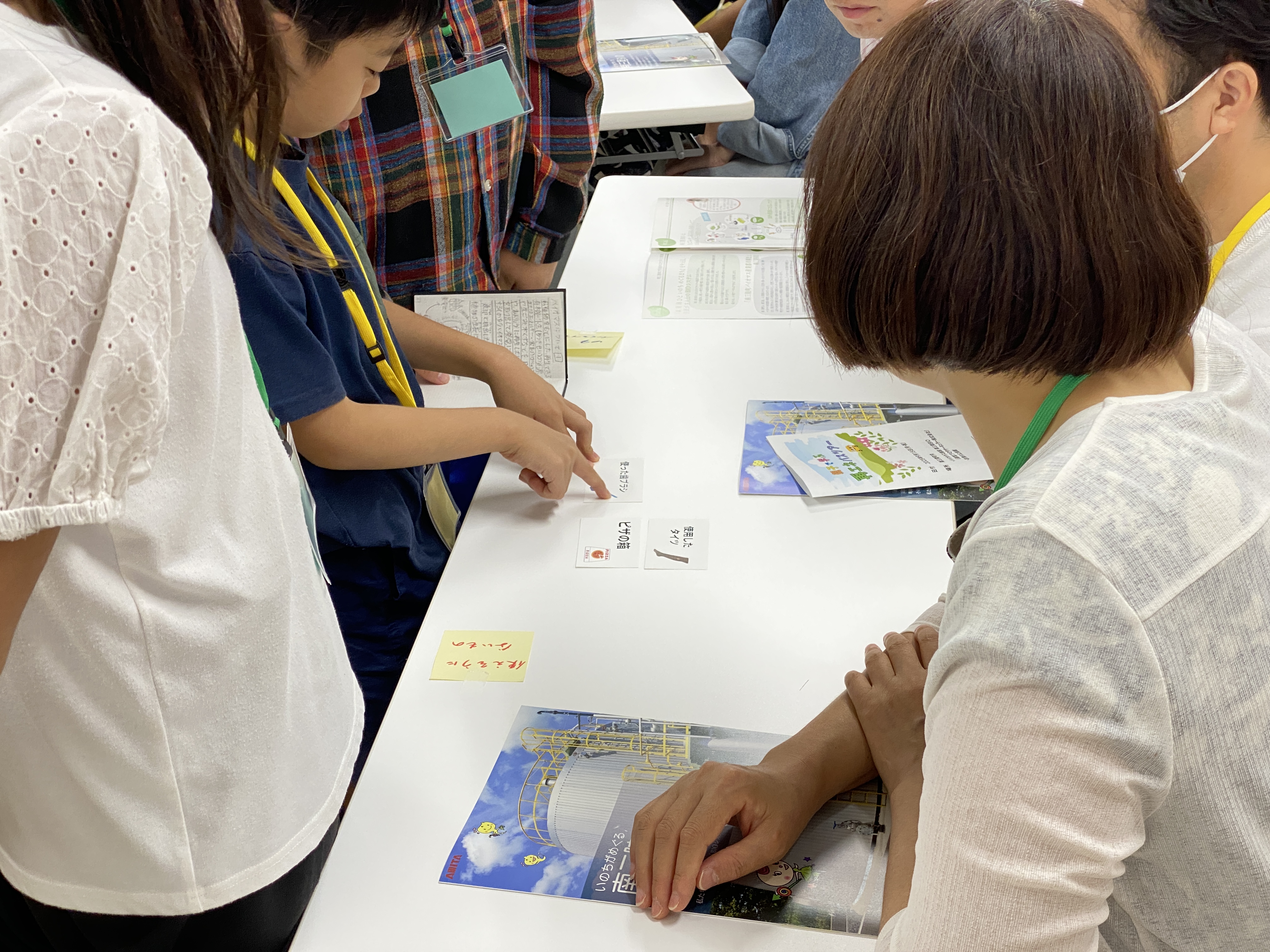 施設見学に先立ち、今回の学習ツアーのテーマである「再生可能エネルギー」について「学びの里 いりやど」でイントロダクションを受けました。枯渇せず繰り返し利用できる再生可能エネルギーを生み出すバイオガス発電。身近な物の中でいったい何が再生可能エネルギーに変わるのかを考え、親子で意見を出し合うワークショップも行われました。