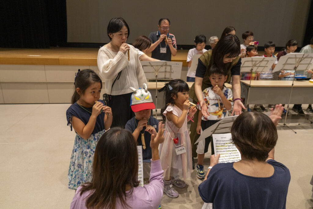 参加した親子の方からは「簡単にできたのでよかった」との感想も。完成した笛は翌日のコンサートの曲中で披露するため、早速練習!体験の成果が音楽として響きました。