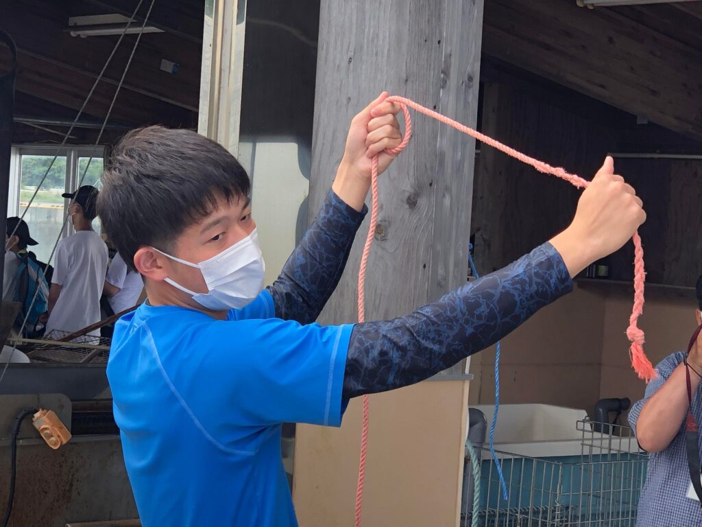 プログラム内容漁船乗船体験・海の環境や養殖に関わる紙芝居・ロープワーク・生き物観察等の3班に分かれ回転制で行います。