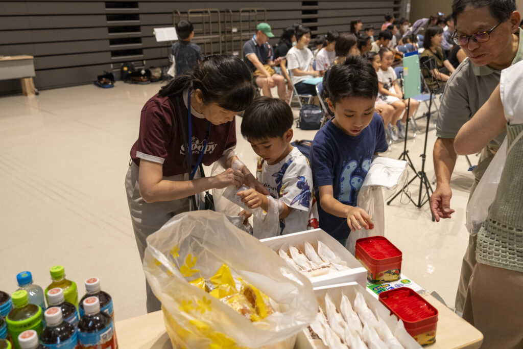 初日は 南三陸町ベイサイドアリーナ文化交流ホールでの練習からスタート。実際に、式典やコンサートで使われることも多い本格的なホール。フラットな面積が広いので、レイアウトの自由度が高く、合奏の隊形もスムーズに調整できました。バイオリン、チェロ、ピアノを学ぶ4歳から50代まで、年代も幅広い生徒さんが、一堂に会して真剣な表情で音を合わせます。普段は別々の教室で習う生徒さんたちにとって、この合宿は特別な時間です。休憩時間には、指導者のみなさんの計らいで南三陸のおやつが配られ、笑顔がこぼれる場面も見られました。