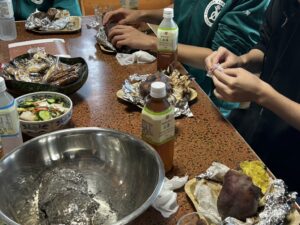 焼き上がった熱々のサツマイモを、みんなで掘りごたつを囲んでほおばりました。