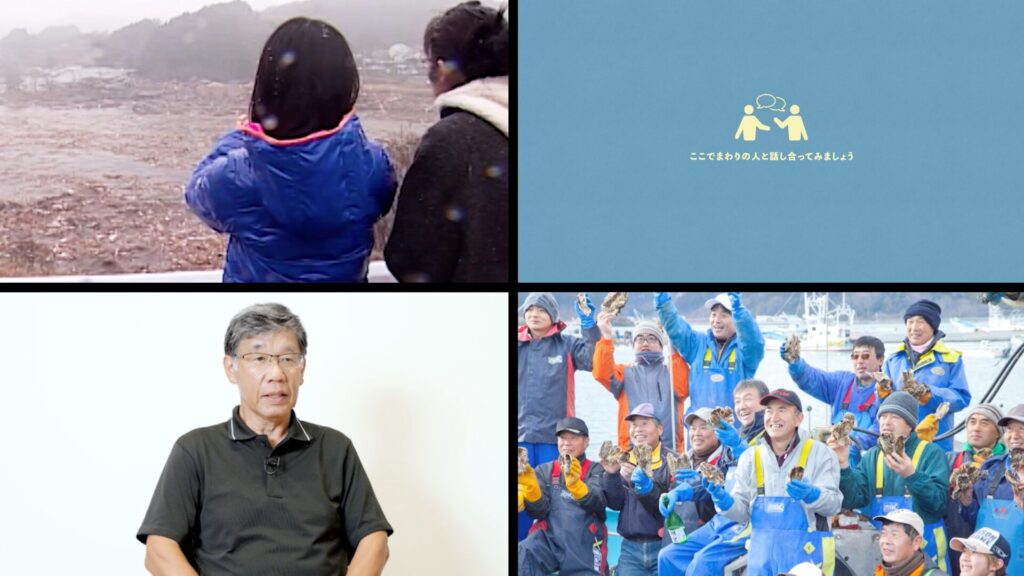 - 震災当時の住民の証言映像、被災の教訓から得られた問いかけ、参加者同士の対話を通じ、自身の考えや学びを深めることができます。