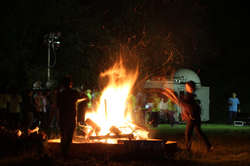 雄大な海が広がるキャンプ場で、焚火の炎を囲みながら夜の行事を楽しめます。スタンツなどの発表の場としてご活用ください。
