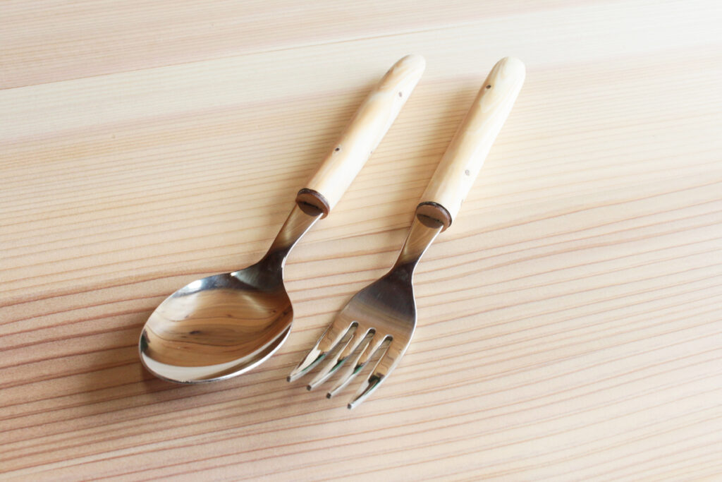 - 根気よく磨くとツルっと滑らかな持ち手のスプーン・フォークの完成!
