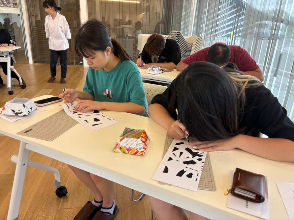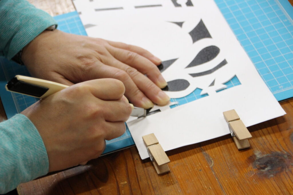 - 用意した型の上からカッターで丁寧に模様を切り取ります。