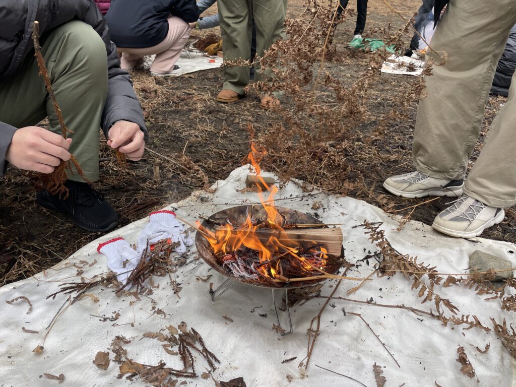 適正な森林管理が行われているFSC山林を見学。「火起こし」体験を通じ、森の恵みやエネルギー循環について学びます。