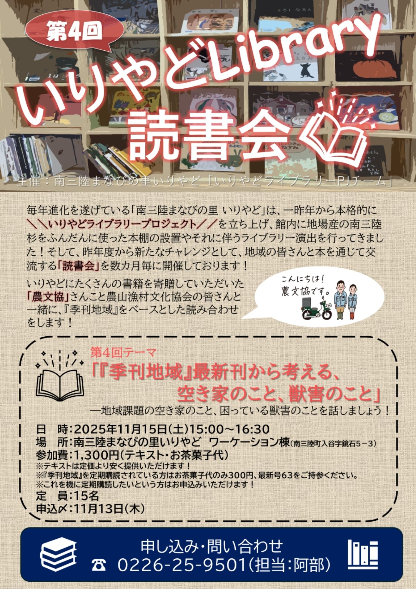 - 申し込み・問い合わせ:南三陸まなびの里いりやど 0226-25-9501(担当:阿部)
