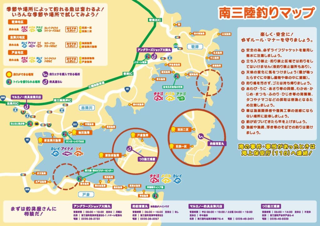 2.南三陸町の釣りスポット・よく釣れる魚(例)