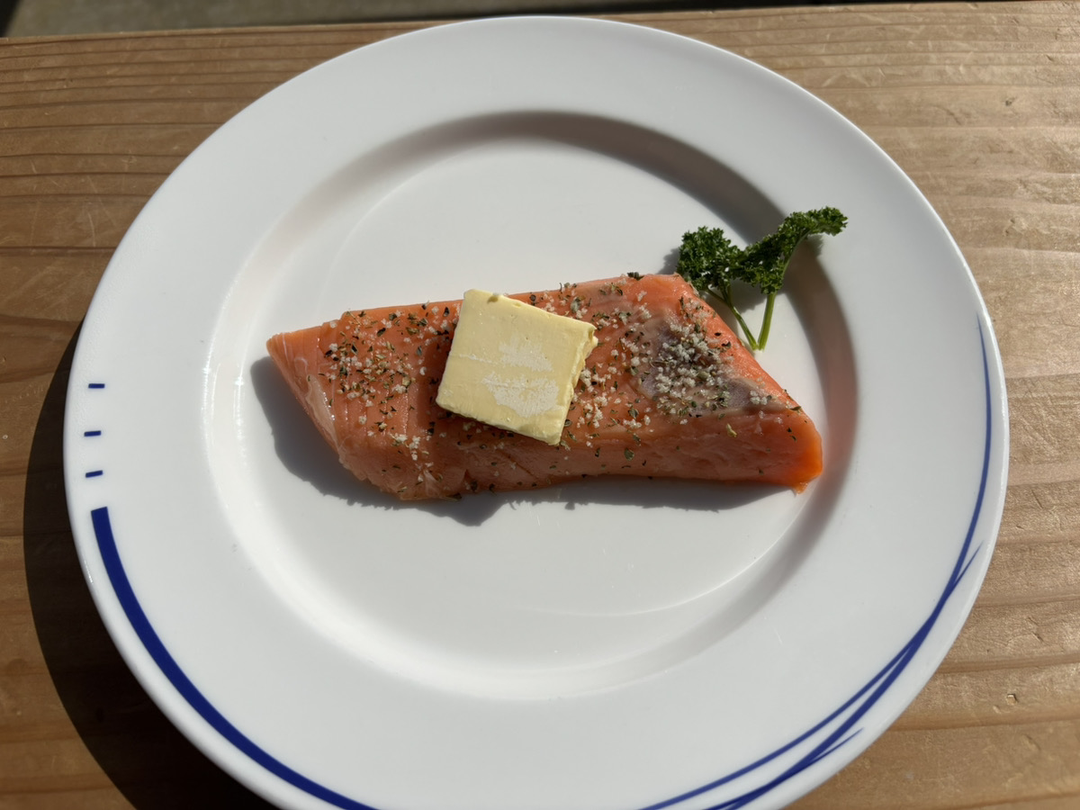旬を迎える南三陸産の誇るブランド「南三陸サーモン」とバターを一緒に焼いてお召し上がりください