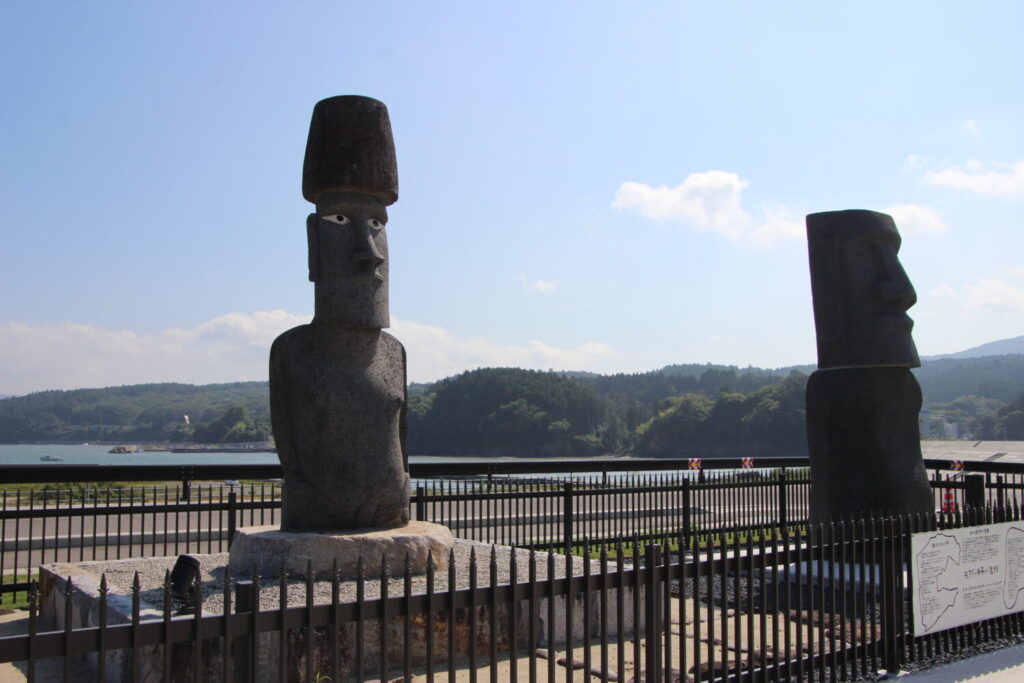 チリと南三陸の絆「モアイ像」が2体揃って「うみべの広場」に登場!