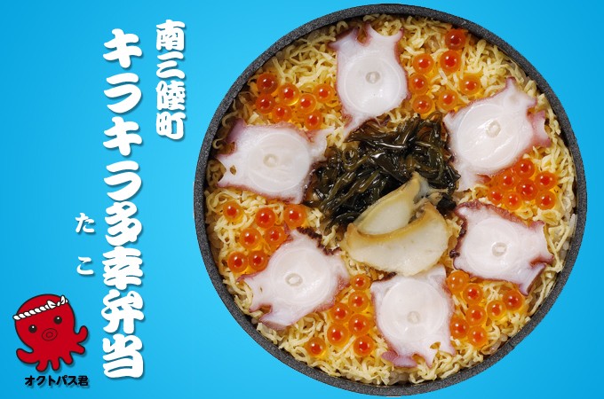 南三陸町発「南三陸町キラキラ多幸弁当」の販売が今月25日より開始されました!!南三陸町産のタコ、アワビ、イクラ、メカブをのせた贅沢なお弁当。