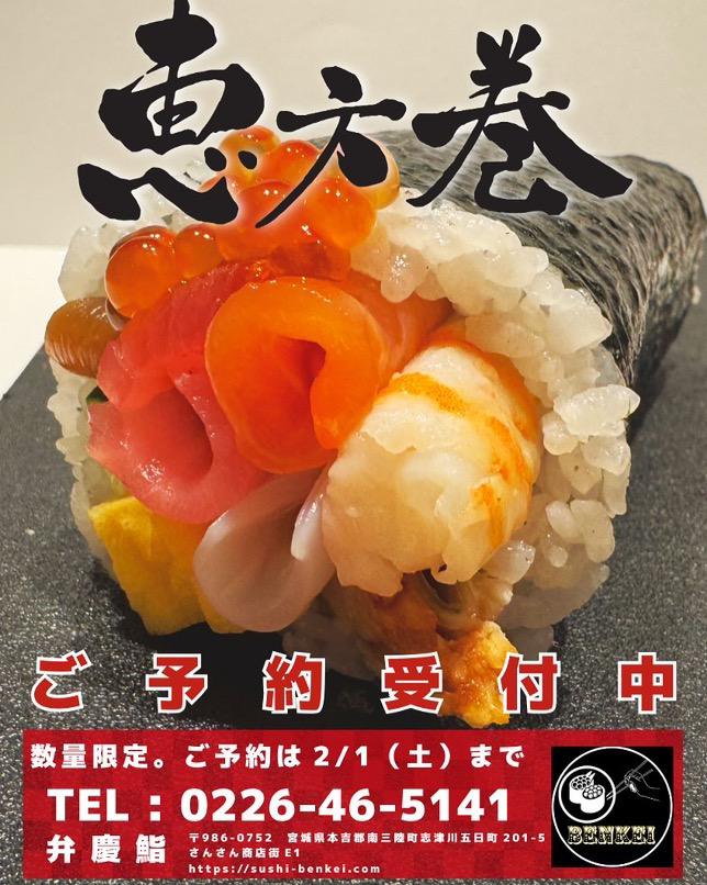 節分に「恵方巻」を食べる文化が定着してきましたね。 南三陸町の飲食店でも予約受... -