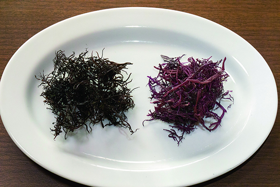 新鮮なフノリは濃い緑色。乾燥させるとより黒っぽくなる。