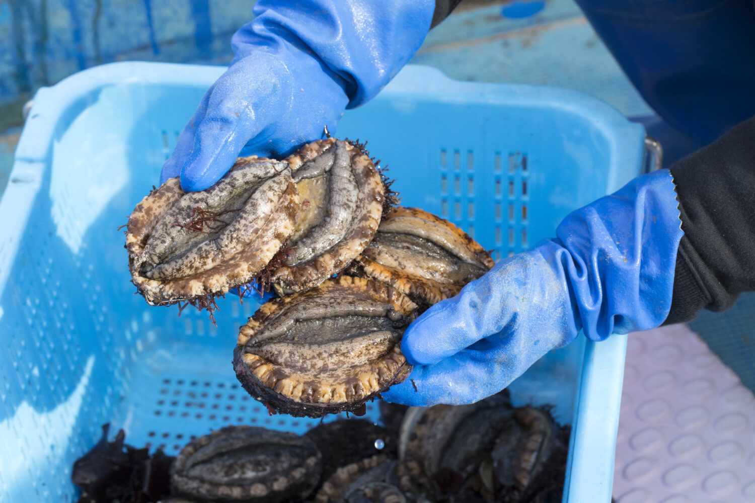 水槽で生きている活あわびをお持ち帰りください!